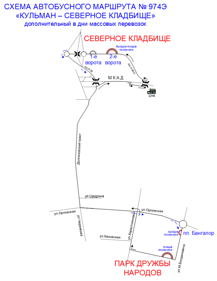 — только 21.04.2026 с 07:00 до 17:00 организуется дополнительный автобусный маршрут № 974Э «Кульман – Северное кладбище», отправления будут осуществляться по мере наполнения салонов автобусов. Остановочный пункт для посадки: «Парк Дружбы народов».