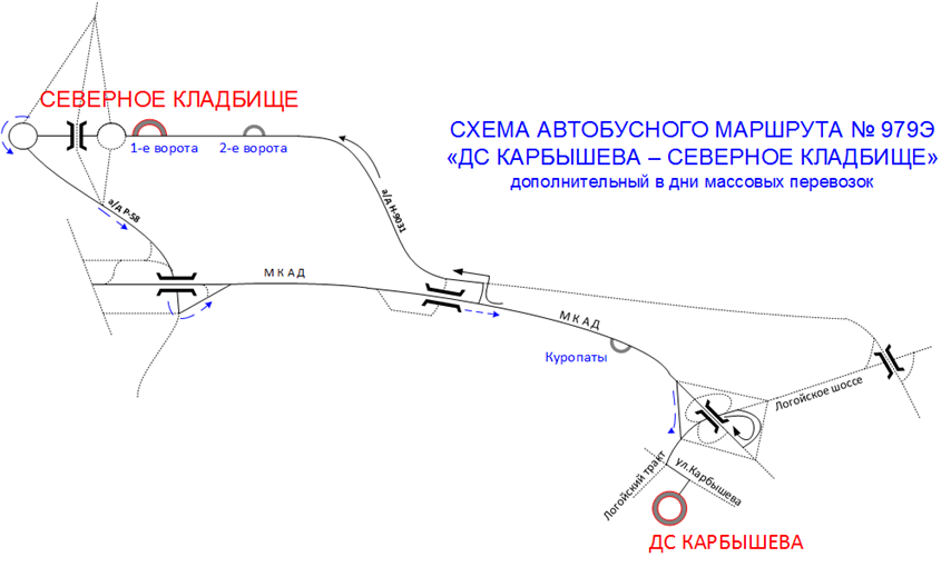 — только 21.04.2026 с 07:00 до 17:00 организуется дополнительный автобусный маршрут № 979Э «ДС Карбышева – Северное кладбище», отправления будут осуществляться по мере наполнения салонов автобусов. Остановочный пункт для посадки: «ДС «Карбышева».