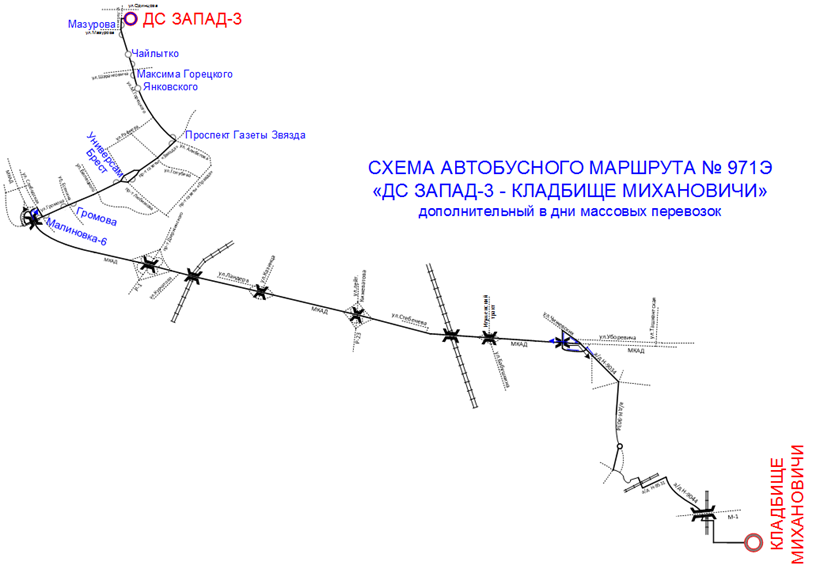 — только 21.04.2026 с 07:00 до 17:00 организуется дополнительный экспрессный автобусный маршрут № 971Э «ДС Запад-3 – Кладбище Михановичи», отправления будут осуществляться по мере наполнения салонов автобусов.