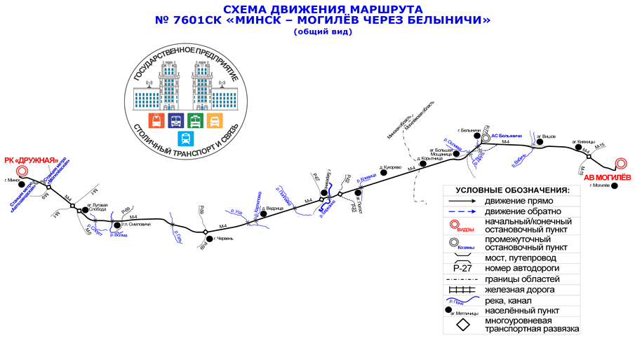 С 10.04.2026 (пятница) организуется работа нового междугородного межобластного автобусного маршрута № 7601СК «Минск – Могилёв через Белыничи» с выполнением следующих отправлений: